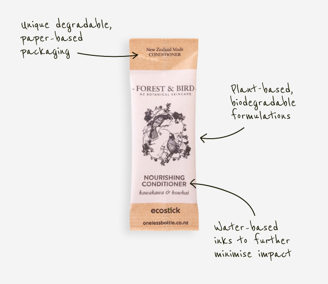 When we looked at developing ecostick, we considered all these in great detail. We knew that currently hotels don’t have the time to clean and recycle the thousands of small bottles they collect every day. We also knew that many recycling facilities within New Zealand and the world over currently struggle with small bottles as they fall between the gaps in the sorting process and end up in landfill. The answer therefore was to reduce the amount of packaging in weight and volume and also develop a form of packaging that would break down specifically in landfill.